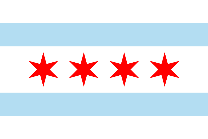 The four six-pointed red stars represent major historical events: Fort Dearborn, the Great Chicago Fire of 1871, the World’s Columbian Exposition of 1893, and the Century of Progress Exposition of 1933–34